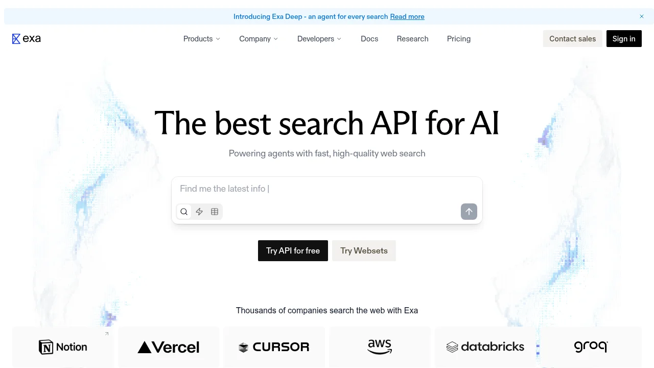 Exa is a semantic AI search engine built for AI agents, designed around meaning and intent rather than keyword matching.