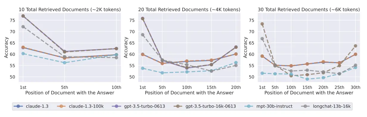 Researchers discovered that AI language models struggle with what's called the "lost in the middle" problem. When given multiple documents to answer a question, these models perform best when the relevant information appears at the very beginning or end of the input. Performance drops significantly when the answer is buried in the middle. Even though the model processes all the documents, the position of key information dramatically affects whether it can use that information correctly.